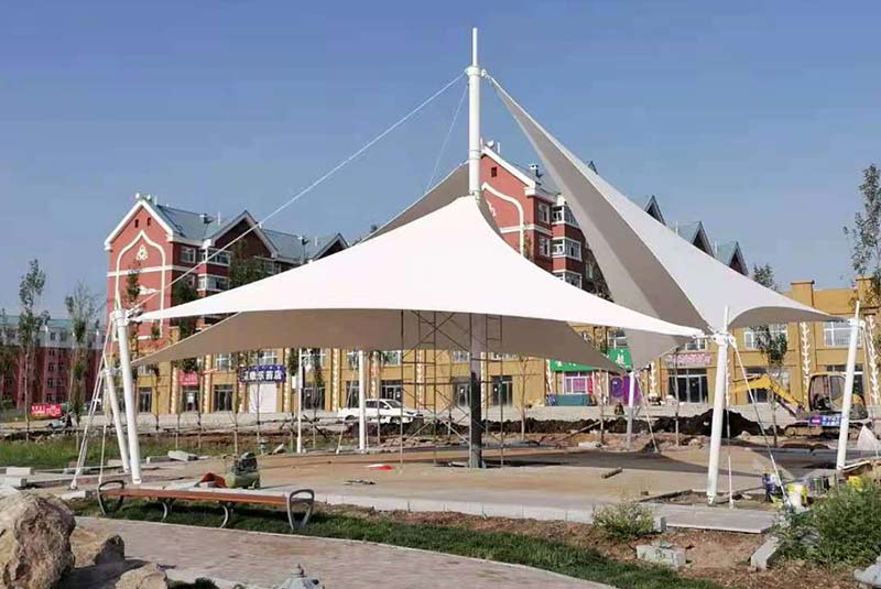 1.长春膜结构介绍PVC膜材料的特点:PVC膜材料的强度及防火性与PTFE相比具有一定差距,PVC膜材料的使用年限一般在7到15年。为了解决PVC膜材料的自洁性问题,通常在PVC涂层上再涂上PVDF(聚偏氟乙酸树脂)称为PVDF膜材料。
